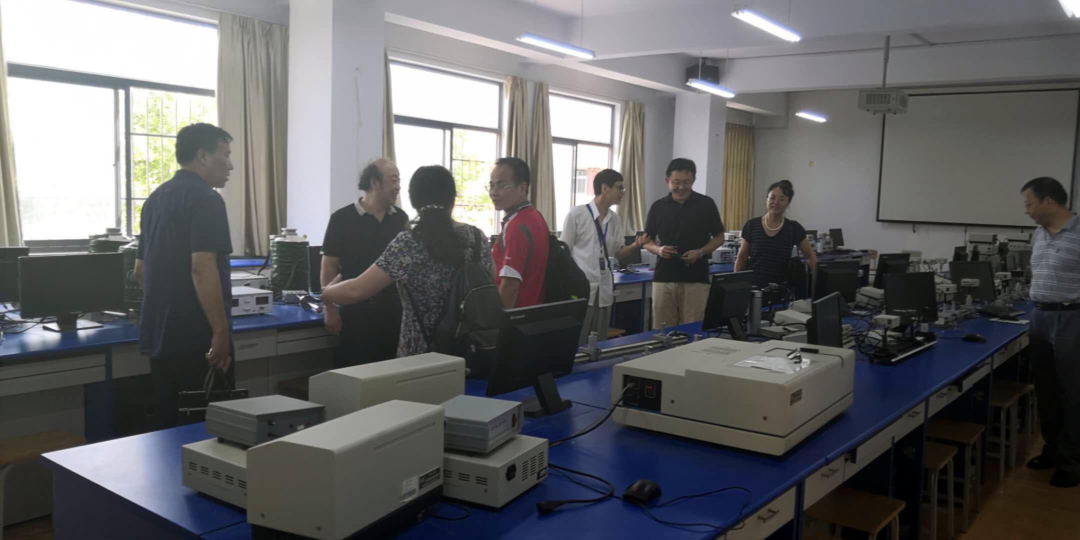 专家们依次参观了近代物理实验室、趣味物理演示实验室、力热实验室和光学实验室。在参观过程中,他们饶有兴趣地详细询问了实验中心设备配置、实验课程安排、实验教学管理和实验教学师资等情况,并就实验教学改革、实验教学技能培训、实验教学比赛等问题与老师们进行了深入交流。
