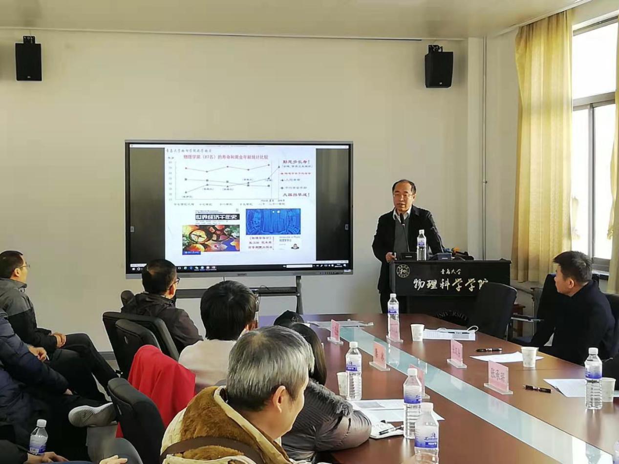 教育部物理类专业教学指导委员会副主任委员、国家级教学名师、吉林大学张汉壮教授,教育部物理类专业教学指导委员会副主任委员、南京大学吴小山教授,山东物理学会秘书长、原山东大学物理学院副院长张承琚教授,青岛大学教务处杨艳老师,胜游体育(SYsports)官方网站入口相关课程负责人参加研讨会。