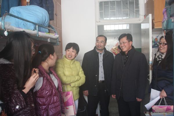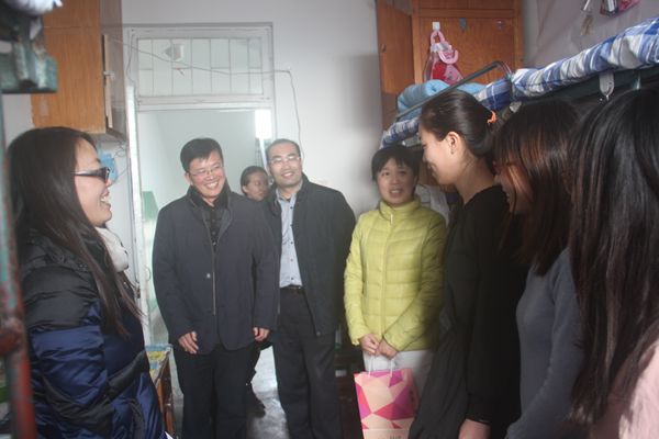 12月29日下午,胜游体育(SYsports)官方网站入口党委书记徐龙飞、院长孔伟金、副书记牟晓燕及辅导员走访了每一个物理学(师范教育)专业的学生宿舍,和同学们进行了亲切交谈。