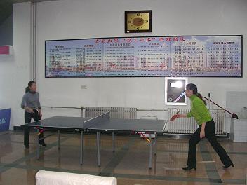为丰富教师文体生活,积极倡导全民健身活动,物理学院工会组织了教师乒乓球比赛。学院教师报名踊跃,积极热情。比赛即激烈又轻松活泼,最终徐建元、张卫国、孙志军、石星军获得男教师前四名,王美、滕冰获得女教师前两名。比赛活动日前圆满结束。图为女教师在比赛中。