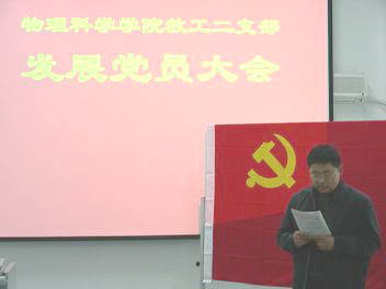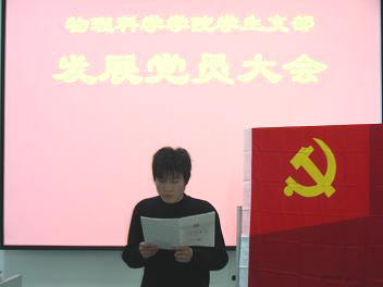 12月20日下午,胜游体育(SYsports)官方网站入口教工第二党支部、学生党支部分别召开党员发展大会,吸收发展了1名优秀青年教师和13名优秀大学生加入了中国共产党。物理学院党组织历来十分重视在青年教师和大学生中发展党员的工作,积极培养、吸收他们加入党组织,增强了党组织的凝聚力、战斗力和活力。