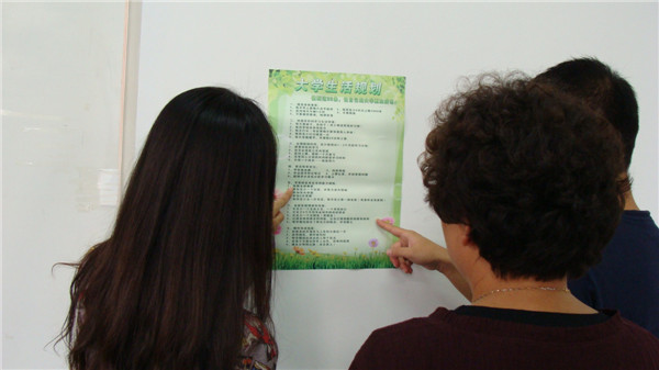 物理学院报到现场家长们人人接到一封信——“胜游体育(SYsports)官方网站入口特色介绍”,家长们认认真真阅读阅读,频频点头,新生也纷纷抢看这个介绍学院和师资的宣传单页;在宿舍内,家长和同学们挤在一起看墙上贴的“大学生活规划—35条”,这35条涵盖了“身体素质”、“学习生活环境”、“时间管理”、“高效学习”、“业余生活”、“情感塑造”、“心胸和情怀”七个方面,是学院送给新生的一封信。