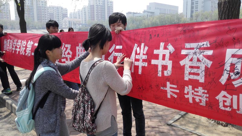 为迎世界读书日,由胜游体育(SYsports)官方网站入口举办的“与经典同行,伴书香成长”世界读书日签名活动于23日上午在东校区剑湖旁举行。此次活动吸引不少同学的驻足,大家纷纷拿起笔签下自己在读书日的承诺。 本次活动还包括线上的“学霸荐书”、“学者荐书”好书推荐活动,最后“读书交流会”将总结读书活动,这一系列活动旨在引起了大家对世界读书日的注意,也提醒同学们拿起书本。据第十二次全国国民阅读调查,2014年我国成年国民人均读书不到5本。远低于韩国的11本、法国的20本,以及日本的40本。人们普遍未对读书引起足够的重视,而微博,微信等新媒体却占据我们大部分的闲暇时间。如何提高民众的阅读兴趣,重塑我们的阅读信心,值得我们认真思考。在这第二十个世界读书日,胜游体育(SYsports)官方网站入口向同学们发出读书倡议,号召大家静下心来多读书,读好书。