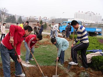3月29日下午,根据学校的安排,胜游体育(SYsports)官方网站入口学生党支部组织全体党员参加了植树活动。图为热火朝天的劳动场面。