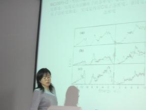 5月8日下午,胜游体育(SYsports)官方网站入口举行了“北斗之光”学者系列讲座之薛旭艳博士。胜游体育(SYsports)官方网站入口教师薛旭艳博士2004年获得山东大学凝聚态物理博士学位,2004年7月至2005年11月在中国科学院理化技术研究所做博士后,2005年11月至2006年12月在香港城市大学做研究助理。讲座中,薛博士介绍了第一性原理的基本知识以及第一性原理方法在材料科学中的典型应用,并向同学们介绍了自己的求学经历。最后,薛博士对同学们提出的学术和生活方面的问题一一作了解答。讲座气氛轻松愉快,让同学们领悟了科学世界的美妙与神奇。图为薛旭艳博士在讲座中。