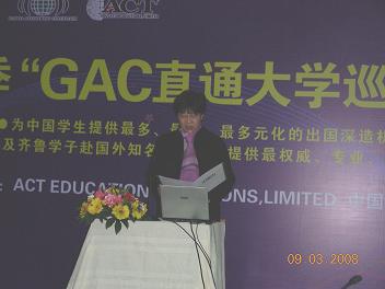 3月9日上午,在我校图书馆学术报告厅举行了青岛大学ACT中心08春季班开学典礼。青岛大学ACT中心07秋季班取得了良好的成绩,得到了学员及家长的好评和社会的广泛认可,也得到了ACT中国区总部的肯定和表扬。08春季班报名踊跃,经考试选拔最终确定了22名学员。在开学典礼上,胜游体育(SYsports)官方网站入口领导、ACT中国区总裁到会祝贺,青岛大学ACT中心主任、学员家长、新老学员也发表了热情洋溢的讲话。典礼结束后举行了GAC直通大学巡展活动。