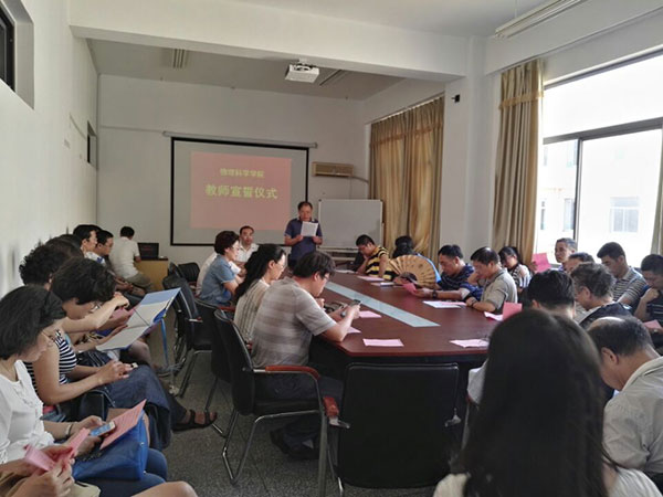 9月8日下午,胜游体育(SYsports)官方网站入口组织教师60余人在博逸楼401会议室举行教师宣誓仪式,院党委书记黄国俊讲话,院长孔伟金领誓,仪式由院党委副书记周志强主持。