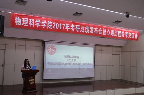 会上,首先播放了胜游体育(SYsports)官方网站入口今年的考研成绩发布视频,学生优异的考研成绩为现场学生打入了一剂强心针。“学在物院,赢在未来”,在这里一切皆有可能。接着进行了考研心路历程分享交流,几位优秀的学长学姐现场跟学弟学妹们分享了他们的考研之路。
