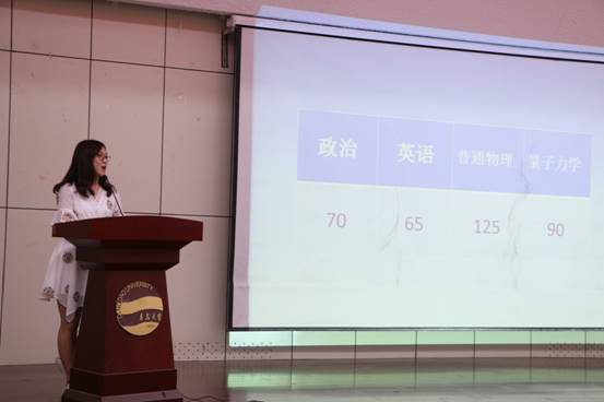 最后,滕冰副院长介绍了学院的十三五规划,在考研工作上学院为同学们做足了保障。她强调,每个青大物理人身上都带着耀眼的光环,希望大家每个人都能绽放出自己的光彩。