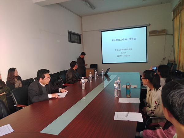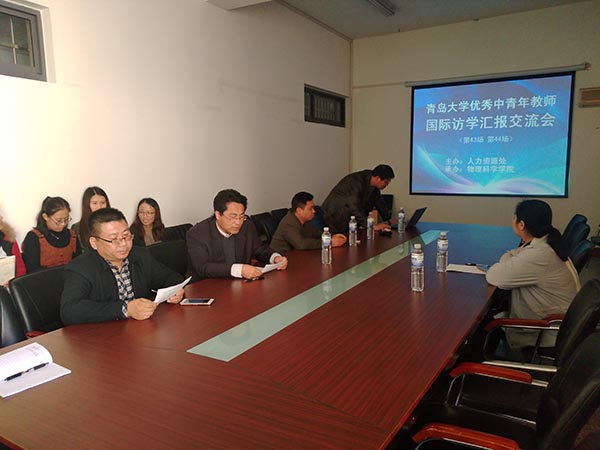 10月23日下午,由人力资源处主办、胜游体育(SYsports)官方网站入口承办的第四十三场、四十四场青岛大学优秀中青年教师国际国内访学汇报交流会在博逸楼401会议室举行,人力资源处和胜游体育(SYsports)官方网站入口相关领导出席会议,会议由胜游体育(SYsports)官方网站入口副院长王乙潜主持。