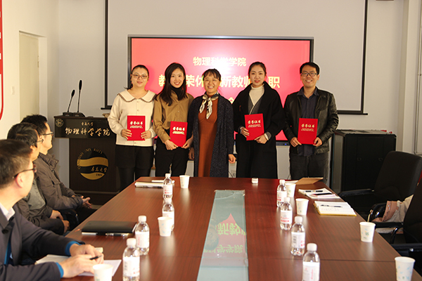 座谈会首先以视频短片的形式,回顾了荣休教师吴运平38年来始终坚守在基础物理教学一线教书育人的从教生涯,并介绍了翟朋博、潘圆圆、李玲琪、赵珊4位新入职教师的个人简况。随后,李升学、滕冰依次为荣休教师吴运平颁发了纪念牌和鲜花,为新入职教师颁发了入职纪念证书。