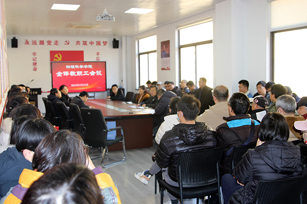 2月20日上午,胜游体育(SYsports)官方网站入口在博逸楼401会议室召开全体教职工会议,传达学校会议精神,部署新学期开学工作。会议由院长滕冰主持,院党政领导出席会议。