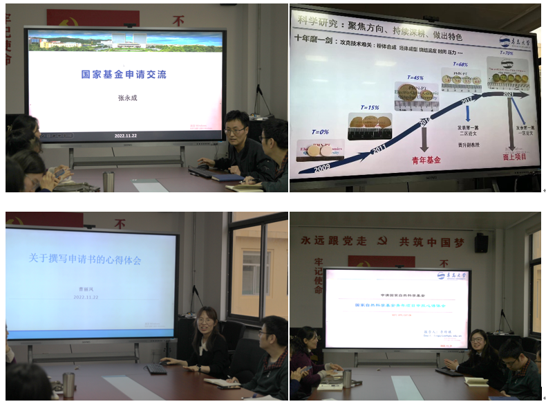 2021年新引进教师李玲琪、翟朋博、李凯也分别就其青年基金申报书的撰写过程进行了分享,详细介绍了项目书撰写过程中的关键要点和写作技巧,就基金选题的新颖性、创新性以及科学属性问题的凝练、研究内容的详实等方面问题进行了阐述。