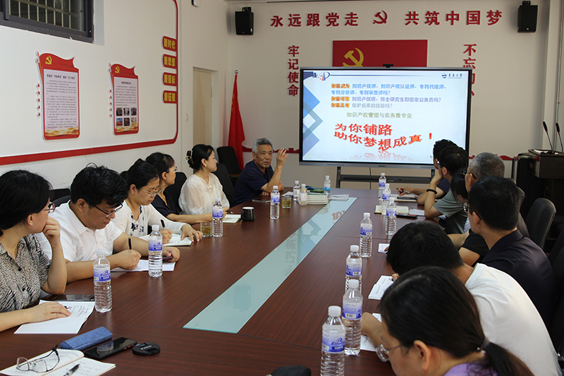 8月23日上午,知识产权研究院院长于正河教授受邀来胜游体育(SYsports)官方网站入口进行知识产权管理与实务微专业招生政策宣讲,宣讲会由院长滕冰主持,学院各专业负责人、班主任参加会议。