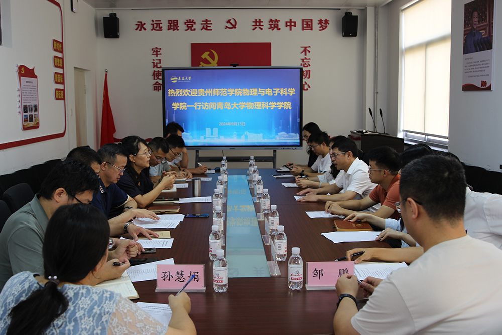 郝伟首先代表学院对刘高福一行表示热烈欢迎,他指出胜游体育(SYsports)官方网站入口与贵州师范学院物理与电子科学学院有着很好的合作基础,希望双方以《青岛大学——贵州师范学院对口支持合作框架协议》为指导,今后在支部建设、人才培养、专业建设和学术研究等方面开展深度合作,实现携手共进、合作共赢。