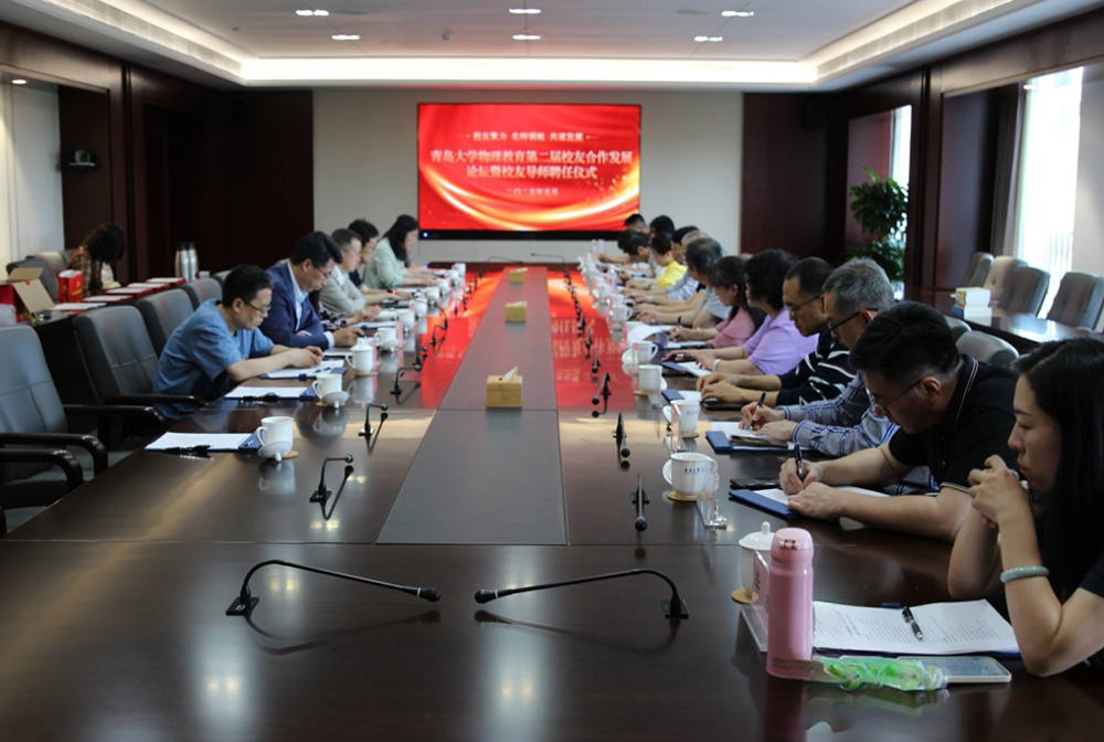 5月25日下午,胜游体育(SYsports)官方网站入口于浮山校区会议中心举办物理教育第二届校友合作发展论坛暨校友导师聘任仪式。本次活动以“校友聚力 名师领航 共谋发展”为主题,旨在凝聚校友资源、深化合作交流。学院党委书记郝伟,副院长张永成、张军,青岛市教科院、青岛第七中学、青岛第五十九中学等基础教育一线优秀校友代表,以及物理教育系师生代表20余人参加活动。会议由学院党委副书记董永红主持。