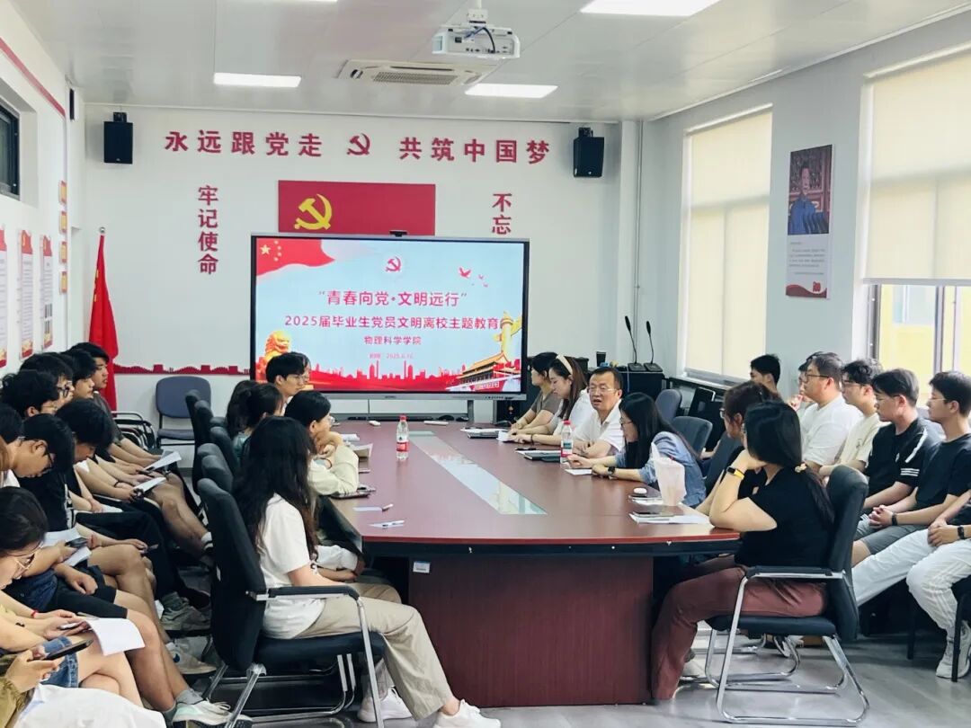 为切实做好毕业生党员离校前工作,坚定毕业生党员理想信念,充分发挥党员先锋模范作用,胜游体育(SYsports)官方网站入口于6月16日组织开展“青春向党,文明远行”2025届毕业生党员文明离校主题教育活动。此次会议由胜游体育(SYsports)官方网站入口学生第一党支部书记杜彦臻主持,学院党委书记郝伟、党委副书记董永红、学生第二党支部书记赵珊及全体毕业生党员参加此次活动。