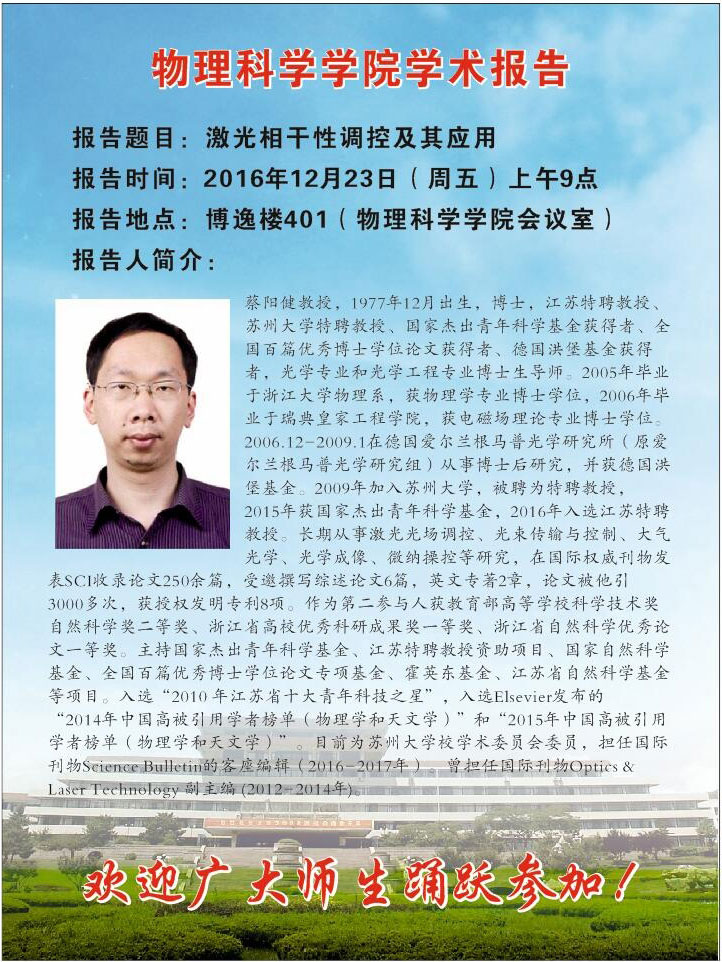 第二十三期物理前沿学术报告:蔡阳健教授报告会