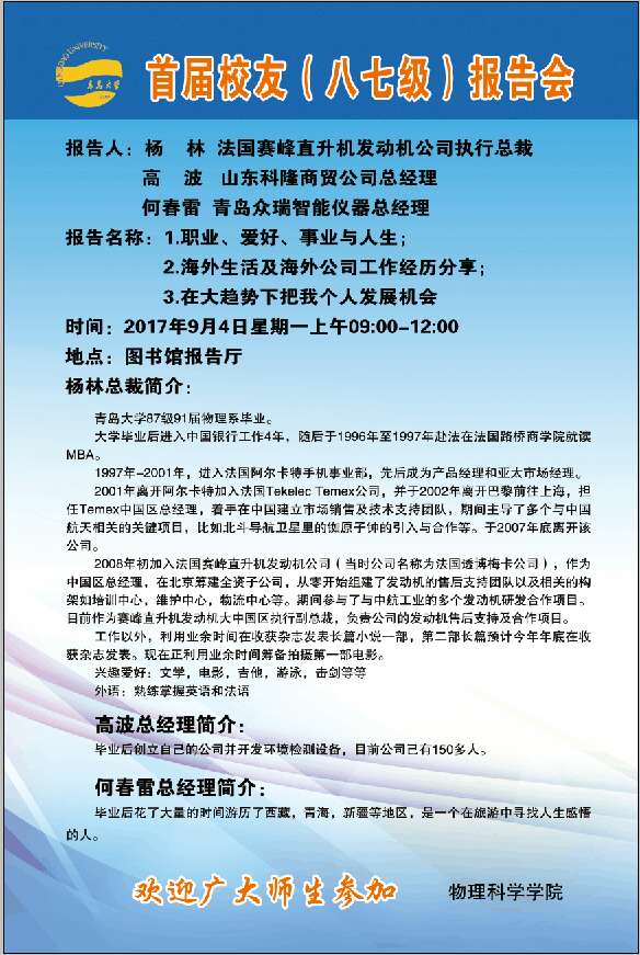 下一篇:2017物理前沿学术报告第二十六讲:大学生与创业