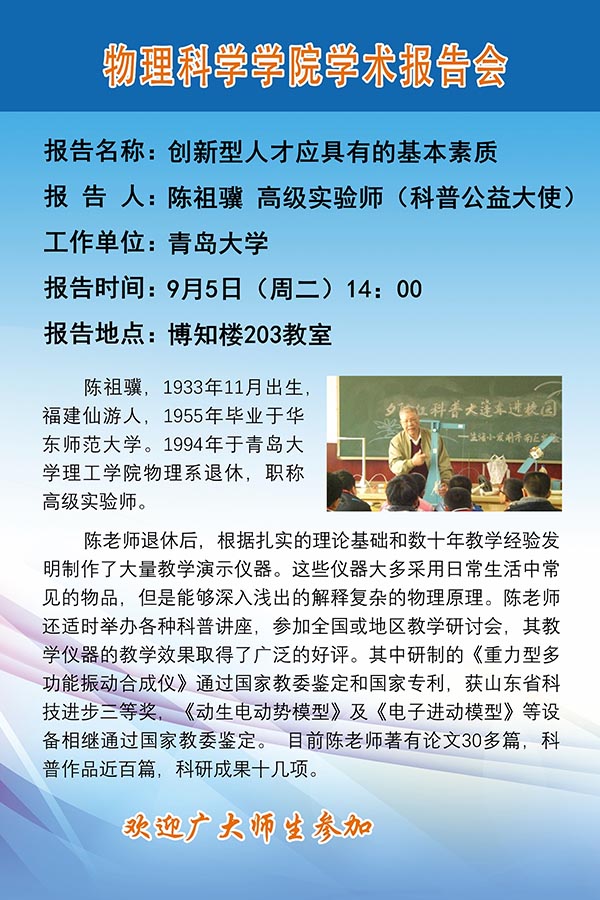 2017物理前沿学术报告第三十讲:创新型人才应具备的基本素质