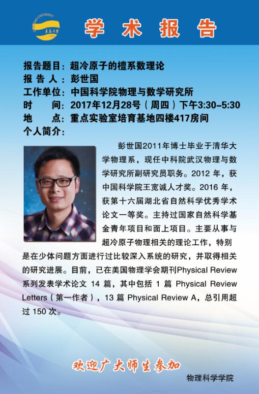 2017物理前沿学术报告第五十二讲:超冷原子的檀系数理论