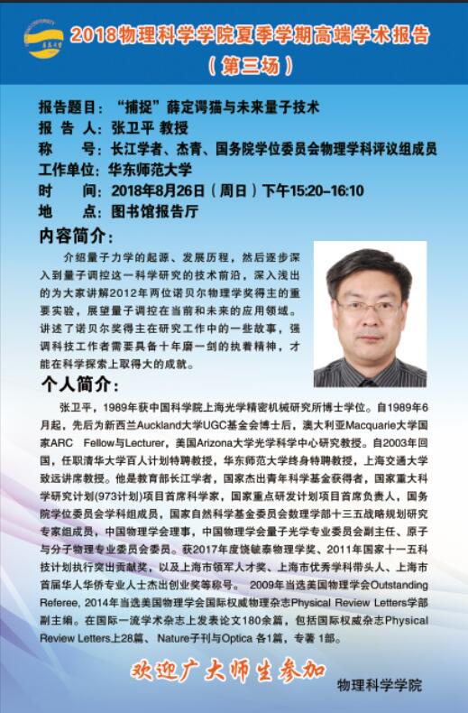 2018物理前沿学术报告第二十三讲:“捕捉”薛定谔猫与未来量子技术