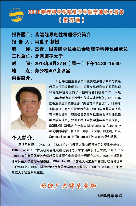 2018物理前沿学术报告第二十五讲:高温超导电性机理研究简介