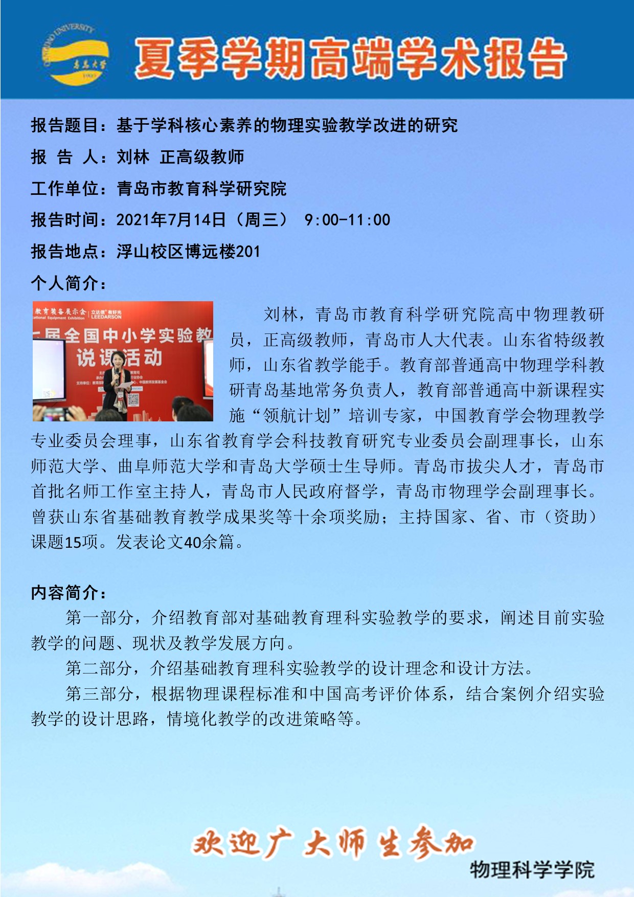 学术活动:基于学科核心素养的物理实验教学改进的研究