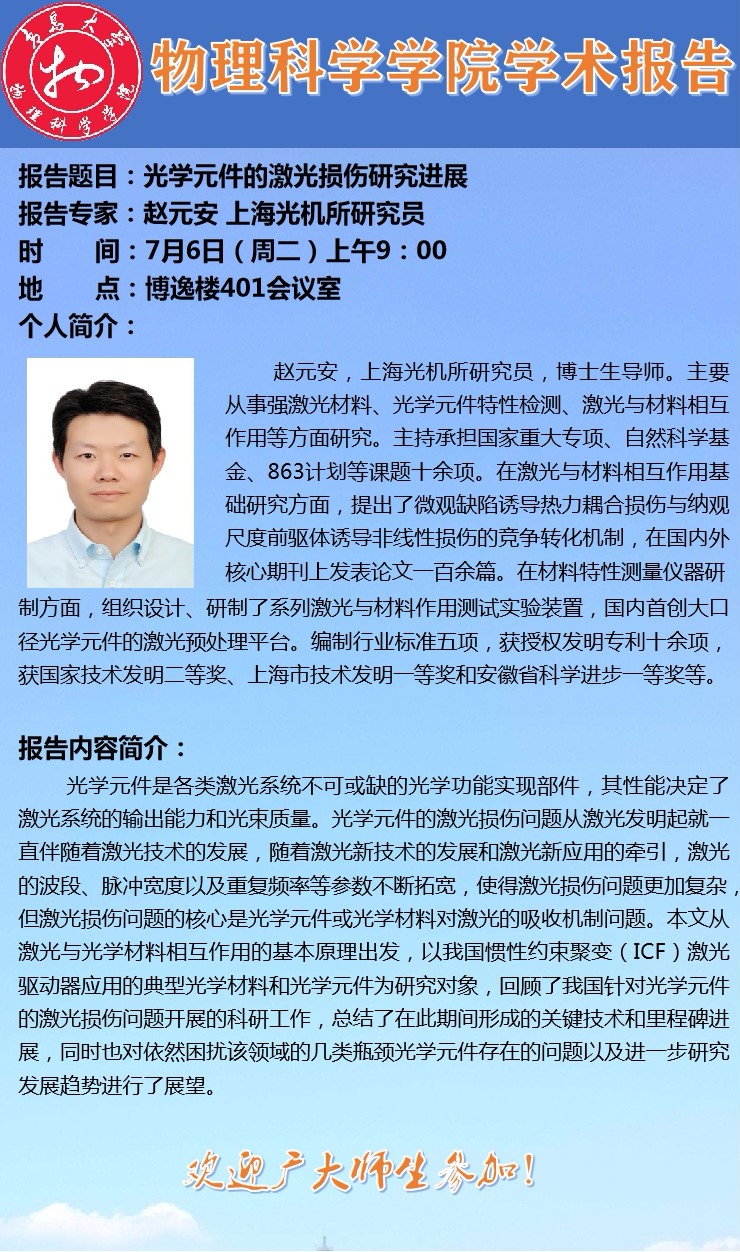 学术活动:光学元件的激光损伤研究进展
