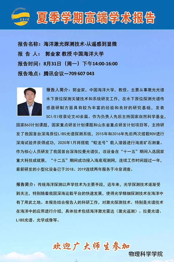 夏季学期高端学术报告:海洋激光探测技术-从遥感到显微