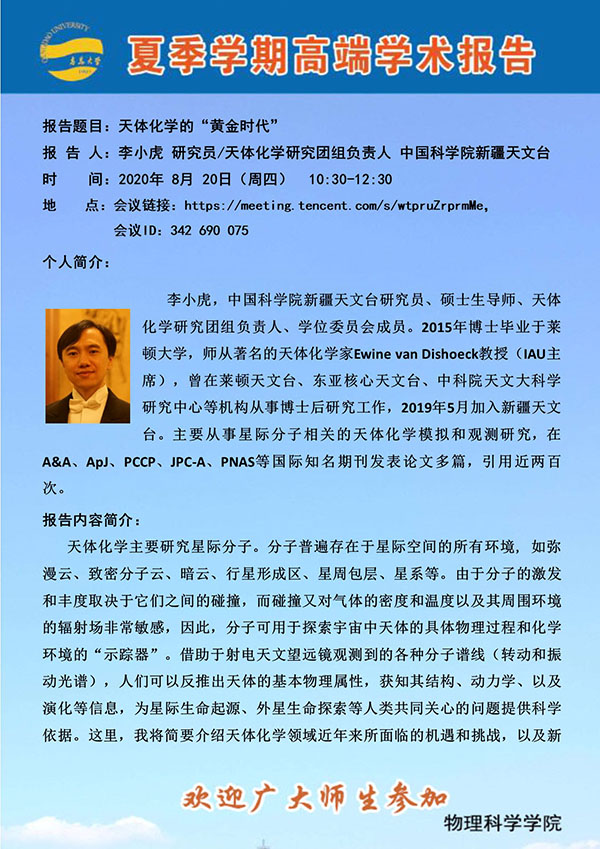 夏季学期高端学术报告:天体化学的“黄金时代”