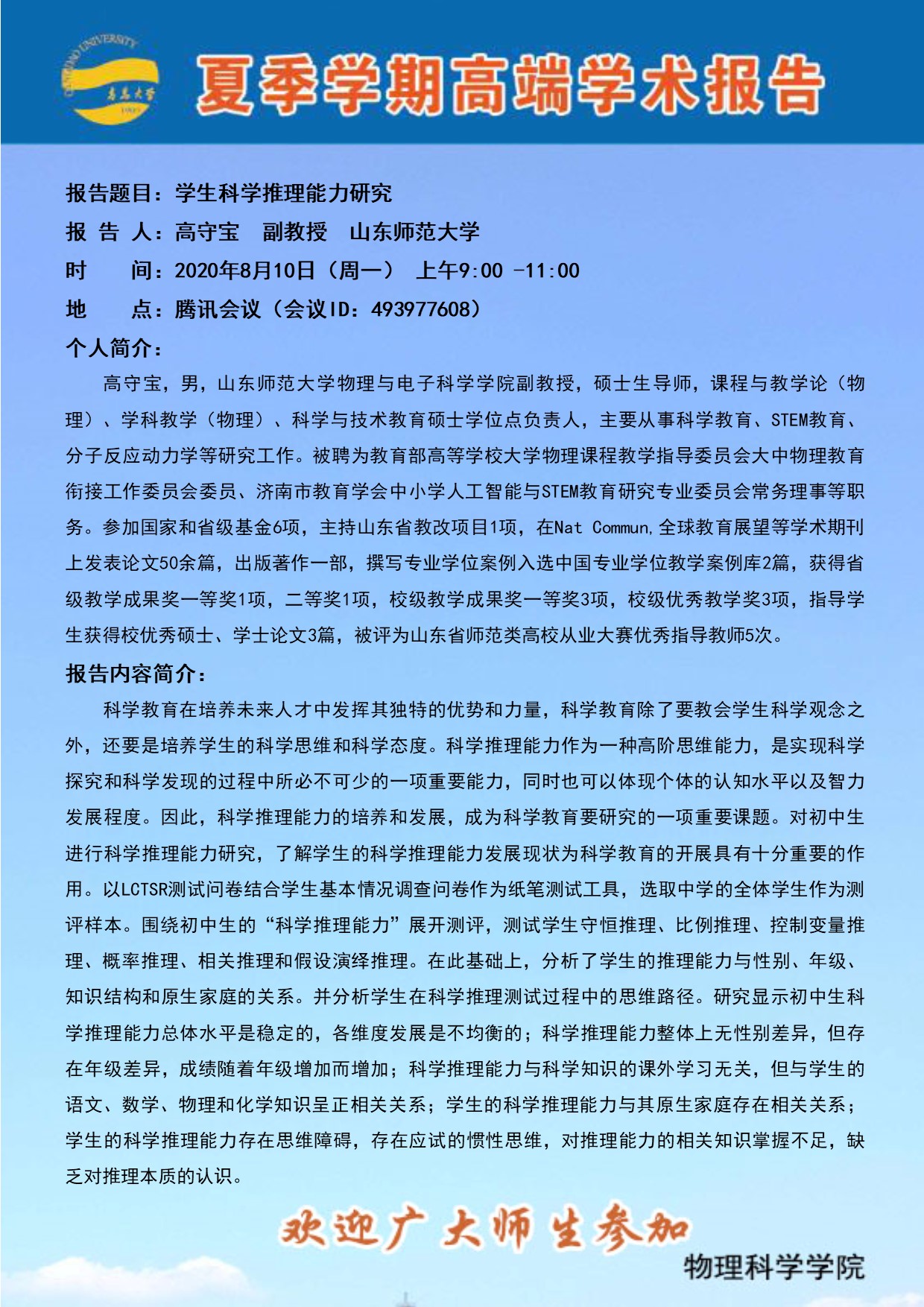 下一篇:夏季学期高端学术报告:把握当下,赢得人生