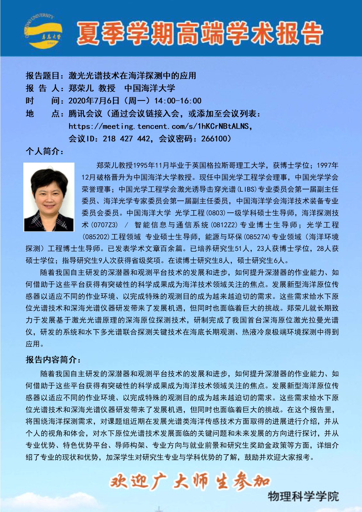 夏季学期高端学术报告:激光光谱技术在海洋探测中的应用