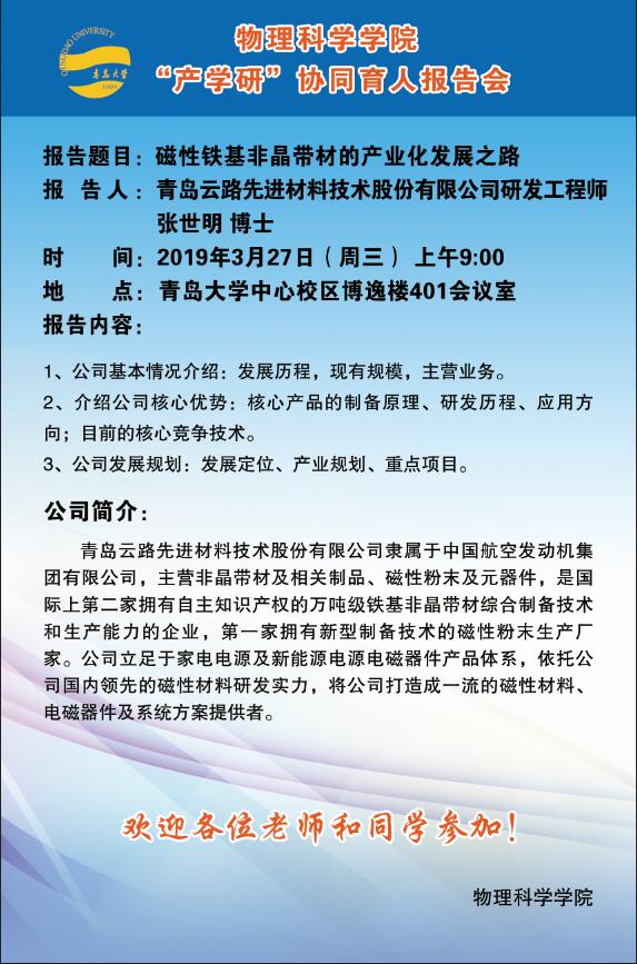 “产学研”协同育人报告:磁性铁基非晶带材的产业化发展之路