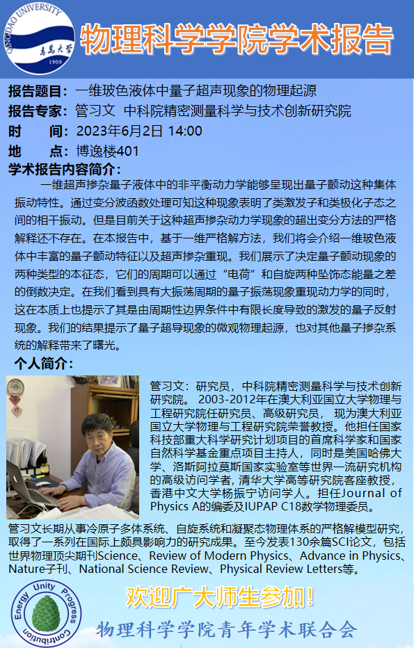 [学术活动]管习文-一维玻色液体中量子超声现象的物理起源