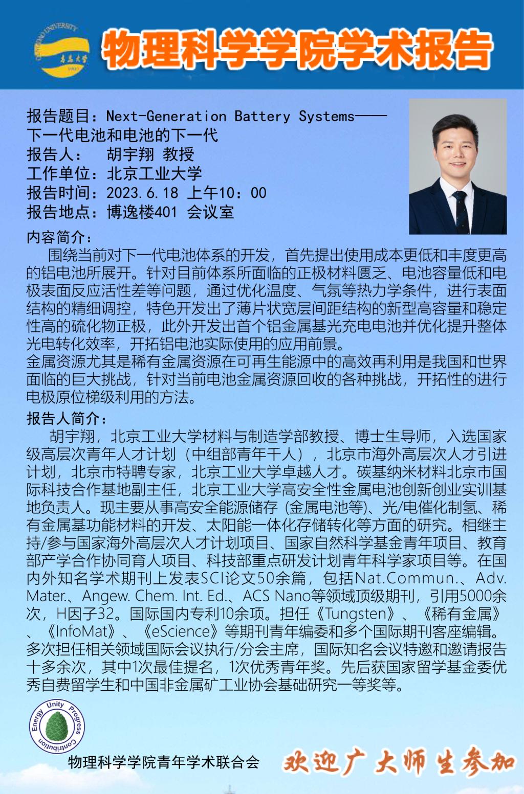 [学术活动]胡宇翔-Next-Generation Battery Systems——下一代电池和电池的下一代