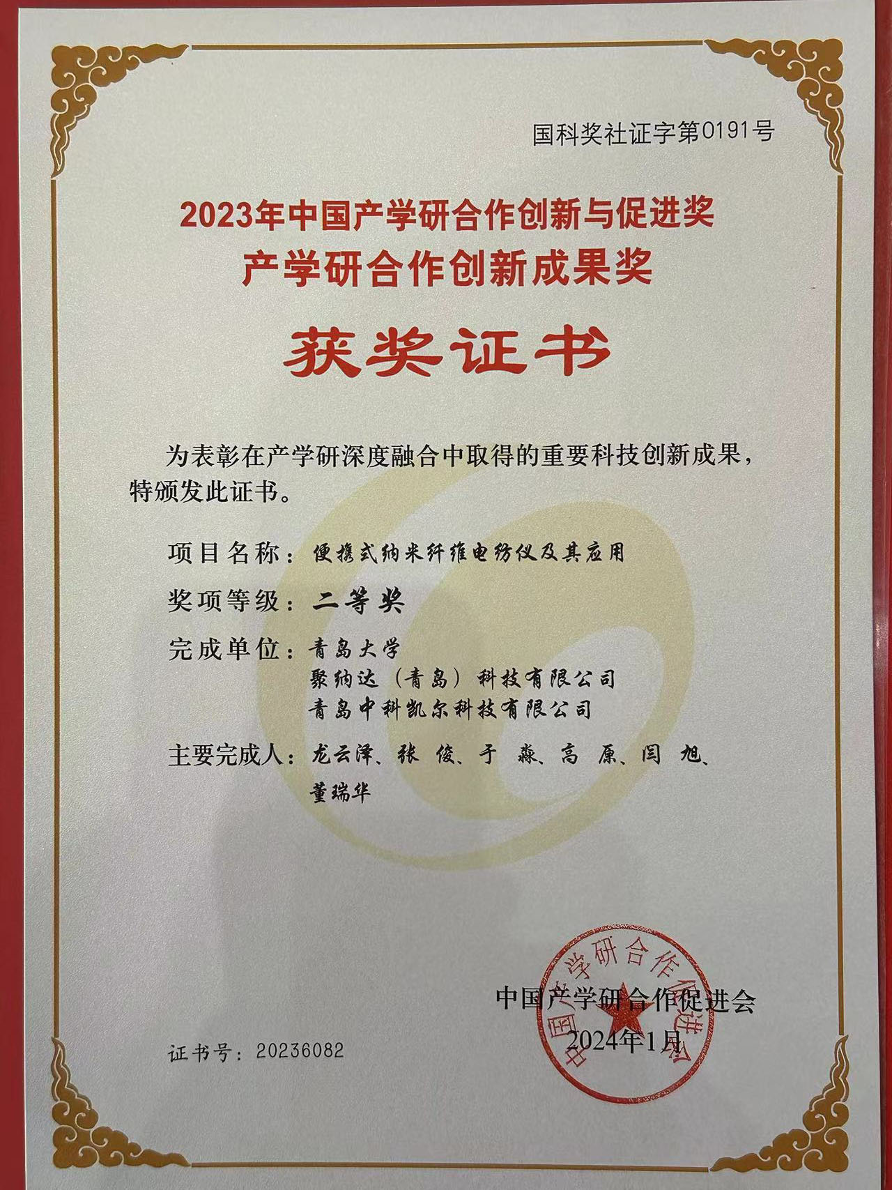 3月17日,第十五届中国产学研合作创新大会在北京举办,大会以“产学研聚焦:新动能 新模式 新产业”为主题,探讨如何通过产学研协同创新将科教兴国、人才强国、创新驱动发展战略落到实处,打好关键核心技术攻坚战,发展新质生产力,支撑引领现代化产业体系建设,加快实现高水平科技自立自强,推动国家高质量发展。会议隆重颁发了2023年中国产学研合作突出贡献奖、创新奖、促进奖、创新成果奖、工匠精神奖,胜游体育(SYsports)官方网站入口龙云泽、张俊团队的成果《便携式纳米纤维电纺仪及其应用》荣获2023年中国产学研合作创新成果奖二等奖。