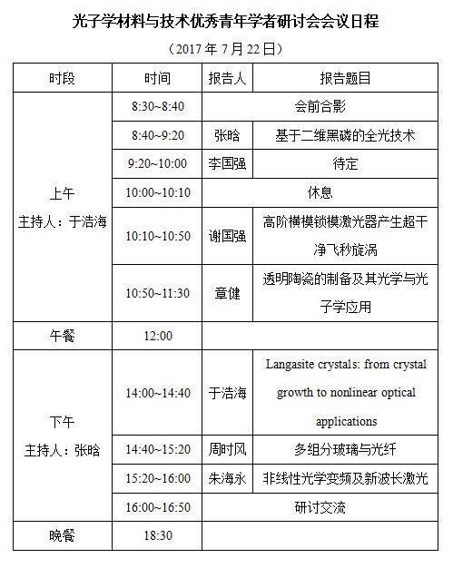 光子学材料与技术优秀青年学者研讨会会议日程