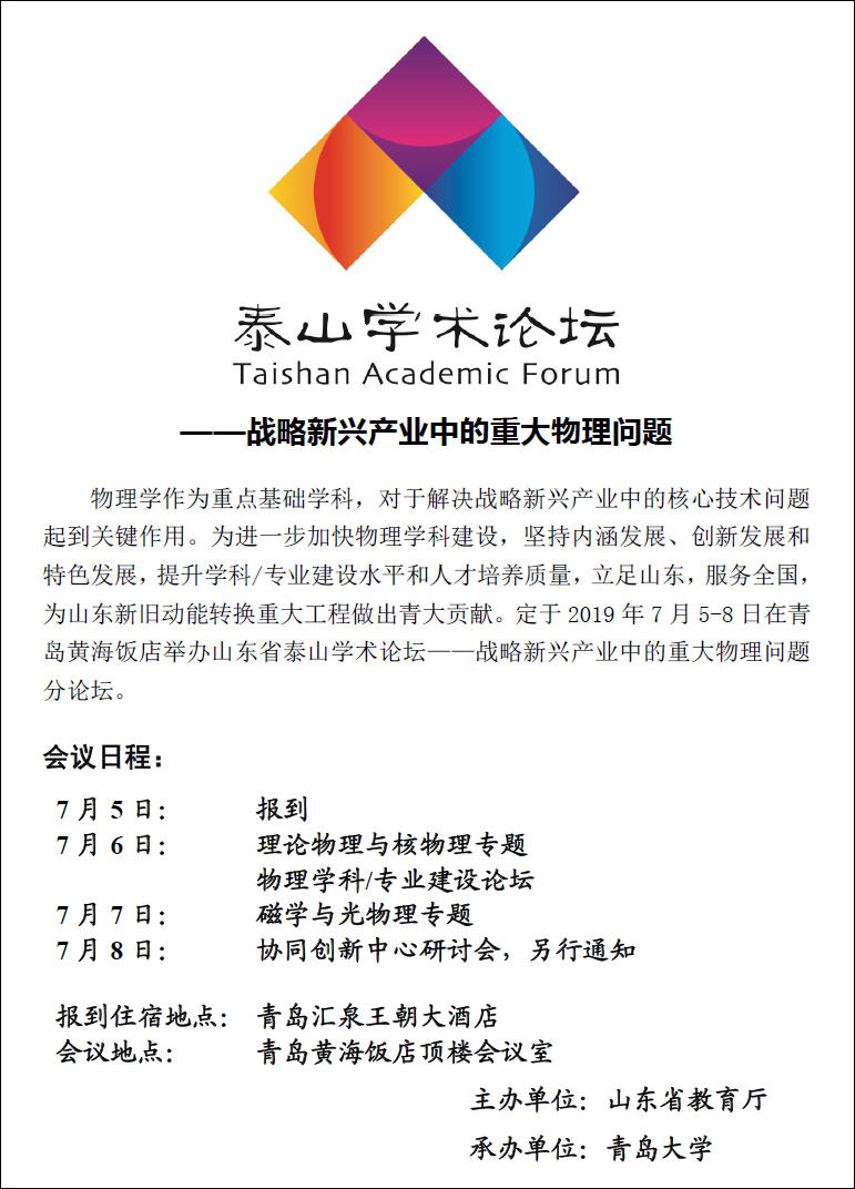 2019泰山学术论坛会议日程