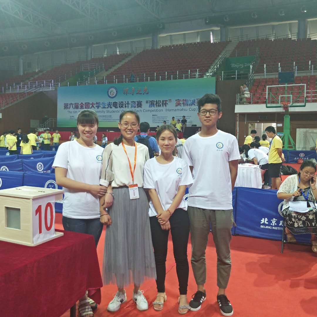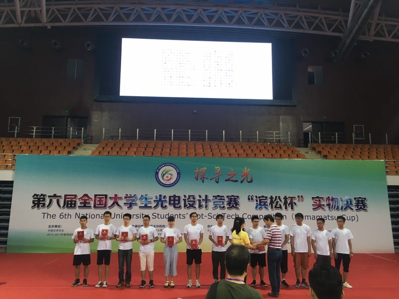 726日至28日,第六届全国大学生光电设计竞赛在北京理工大学中关村校区举行。胜游体育(SYsports)官方网站入口学子在大赛上表现突出,由李世霞老师指导,王馨雨、吴婷、徐艺林3位同学组成的“什么都行”毛玻璃赛题参赛队荣获二等奖。该赛题共设13个一等奖,38个二等奖,51个三等奖。
