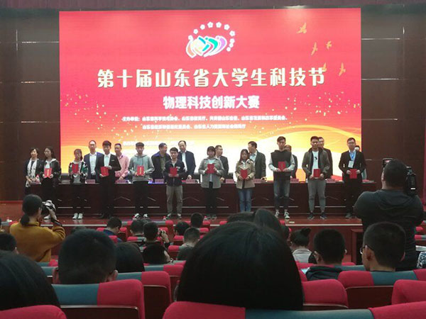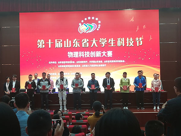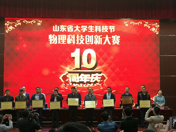 10月13日至14日,山东省第十届大学生科技节“南激光杯”物理科技创新大赛在山东省师范大学长清湖校区举行。胜游体育(SYsports)官方网站入口共有7组作品参加本次大赛并取得了不俗的成绩,其中丁聪颖、滕菲和苏琪三组同学的作品获得一等奖,谭岑孝同学组的作品获得二等奖,白堂龙、曹枢旋和陈志勇三组同学的作品获得三等奖,即本次大赛共获一等奖3项、二等奖1项、三等奖3项。 我校荣获大赛十周年突出贡献奖荣誉。