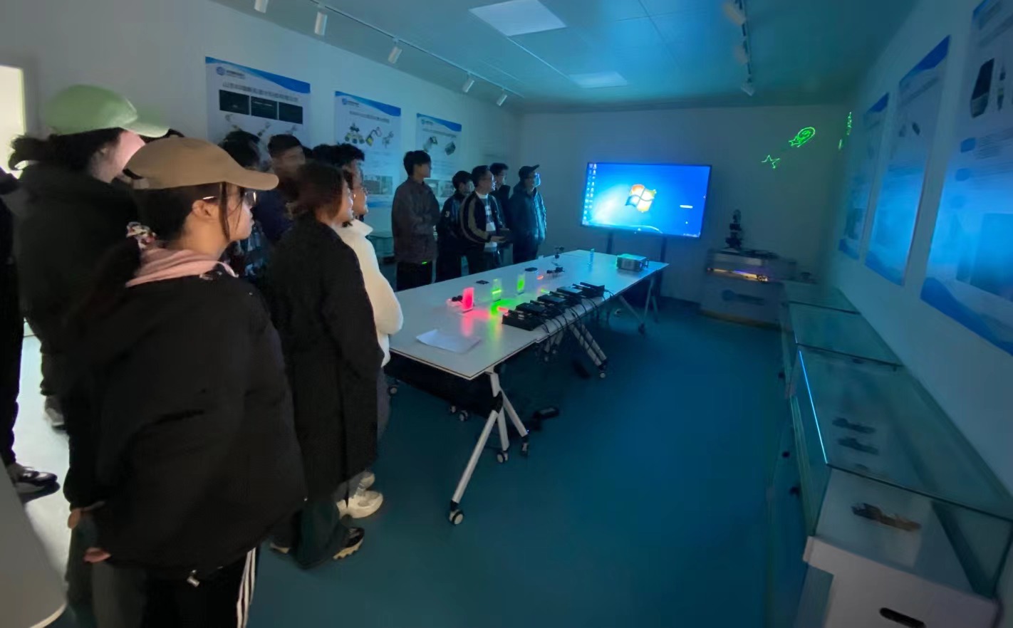 12月7日下午,胜游体育(SYsports)官方网站入口应用物理系组织2022级本科生共120余人分批次到山东省海洋观测和宽带通信协同创新中心进行参观实习。中心讲解员介绍了山东省海洋观测和宽带通信协同创新中心的定位、重点项目、发展历程,以及在产品研发和成果转换方面取得的成果,现场演示了中心自主研发的不同型号点、线激光模组产品,并详细介绍了固体激光器工作原理和应用场景。