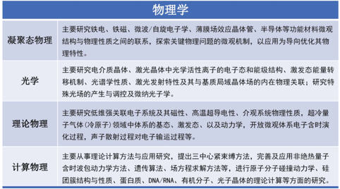 物理学科在凝聚态物理、光学、理论物理、计算物理等领域,围绕多铁磁电耦合、薄膜场效应晶体管、激光晶体、锂电池、光伏材料、低维材料以及强关联电子体系的研究,形成了与国家和山东省发展战略相适应、具有鲜明特色的科研方向。