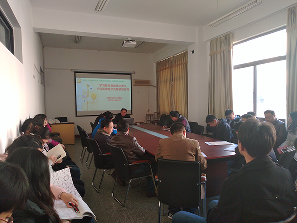 11月23日下午,胜游体育(SYsports)官方网站入口在博逸楼401会议室举行十九大党章专题学习会。这既是一次党的十九大精神宣讲会,也是一次党支部书记专题培训会和党员专题教育会。学院党政领导黄国俊、滕冰出席会议,党支部书记、教工党员和学生党员参加会议。会议由院党委书记黄国俊主持。