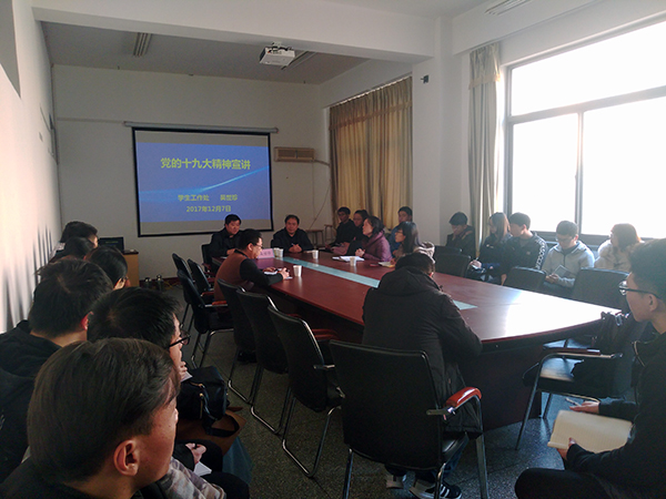根据《关于组织学校学习贯彻党的十九大精神宣讲团成员开展宣讲工作的通知》安排,12月7日下午,胜游体育(SYsports)官方网站入口邀请学生工作处吴世珍处长在博逸楼401会议室为师生进行了十九大精神宣讲。院党委书记黄国俊、党委副书记周志强出席会议,会议由院党委书记黄国俊主持。