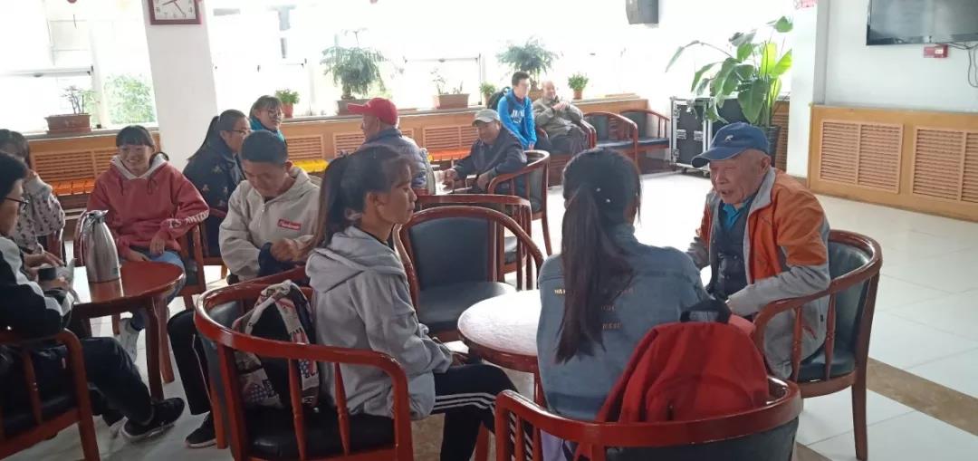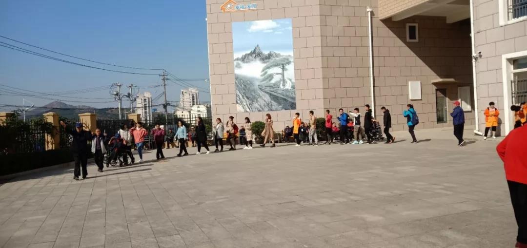 同学们陪爷爷奶奶们聊天、打扑克,分享自己在学校里的开心事,吐槽生活中的点点烦恼。爷爷奶奶们则给同学们讲述他们那个年代发生的奇闻趣事或者抱怨他们的一些不开心。一位对世界充满着无限好奇的爷爷抱怨到:“我在这都老不着(不能)出去”。一位操着东北大口音的同学则幽默地安慰爷爷说:“我们东北滴也老不着出去呀,因为一出门出溜的话就没影了。”临近中午,微风不燥,阳光明媚,同学们陪着爷爷奶奶们一起去室外做操,活动活动筋骨,抖擞抖擞精神,嗅嗅阳光的味道,感受大自然的气息。