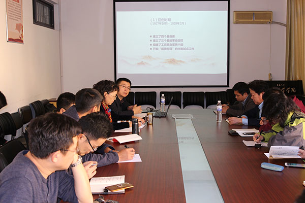李升学为大家上了《井冈山斗争与井冈山精神》的专题党课,他从井冈山斗争的基本概况、井冈山斗争在中国革命史中的历史地位与作用、井冈山精神及其时代意义三个方面讲解了井冈山斗争与井冈山精神。井冈山斗争在中国革命史中的历史地位与作用主要表现为五个方面:一是建立了全国最为成功最为典范的第一块农村革命根据地;二是找到了一条中国式的革命道路;三是第一次提出了我党“在斗争中创造新局面”的思想路线;四是第一次解决了农民的土地问题;五是积累了党政军建设的丰富经验。井冈山精神是以毛泽东为代表的老一辈无产阶级革命家,在探索中国特色革命道路时形成党性、作风的体现,是世界观与方法论,是对井冈山革命根据地的历史解释和理论解释。井冈山精神是中国革命精神之源,是中国共产党精神的原点,其精髓就是“坚定信念、敢闯新路”。井冈山精神的时代价值体现在四个方面:一是建设中国特色社会主义,依然需要坚定理想信念,保持共产党员的先进性;二是建设中国特色社会主义,依然需要坚持实事求是的思想路线,拥有敢闯新路、勇于胜利的胆识、气度;三是建设中国特色社会主义,依然需要依靠群众,执政为民,真心实意地为群众谋利益;四是建设中国特色社会主义,依然需要艰苦奋斗、反腐倡廉,保持旺盛的革命精神。当前我们弘扬井冈山精神,就是要有坚定的无产阶级党性、优良的传统作风、坚强的组织纪律。