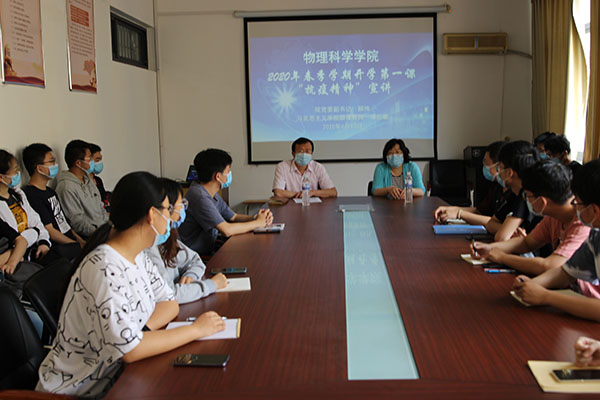 根据学校《关于2020年春季学期形势与政策课“抗疫精神”专题教学安排的通知》要求,6月13日上午,胜游体育(SYsports)官方网站入口在博逸楼401会议室为学生举行了“抗疫精神”专题宣讲课,院党委副书记郝伟作了宣讲,马克思主义学院教师谭志敏参加了宣讲活动,物理教育系2018级学生现场聆听了宣讲。