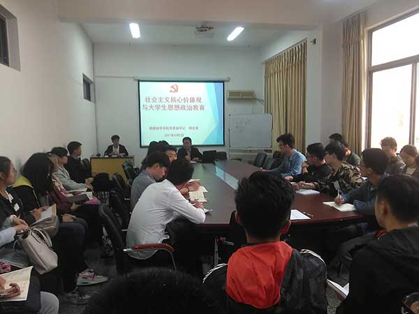 5月9日中午,胜游体育(SYsports)官方网站入口2017年春季学期入党积极分子培训班第三讲开讲,院党委副书记周志强在博逸楼401会议室为全体入党积极分子作了题为《社会主义核心价值观与大学生思想政治教育》的主题报告。