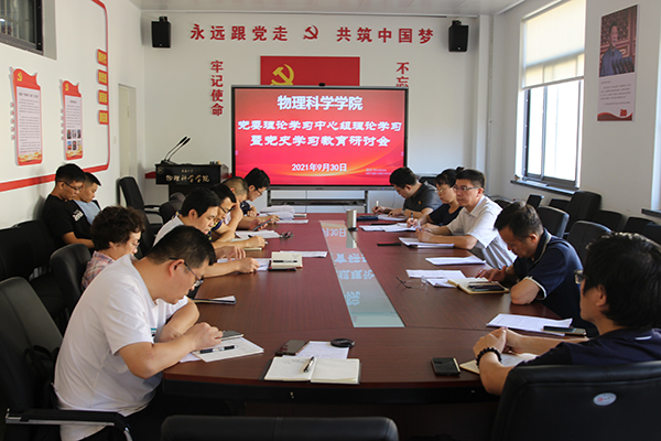 院长助理邵渭泉和张永成、光电信息科学与工程系主任钟石磊、新能源科学与工程系党支部书记曹德让,结合个人学习体会并分别围绕人才培养、科学研究、服务地方、支部建设等内容进行了学习交流专题发言。